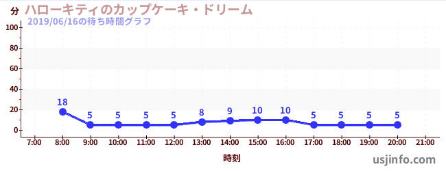 • ハローキティのカップケーキ・ドリーム$B$N(B2019年06月16日の待ち時間
