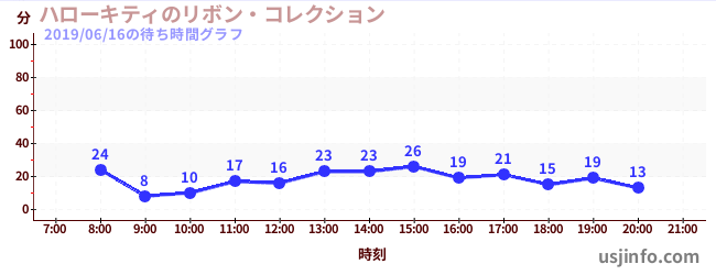 • ハローキティのリボン・コレクション$B$N(B2019年06月16日の待ち時間