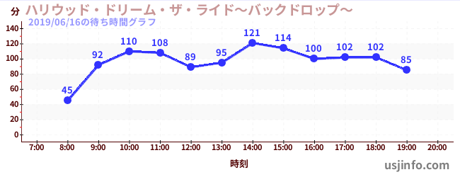 • ハリウッド・ドリーム・ザ・ライド〜バックドロップ〜$B$N(B2019年06月16日の待ち時間