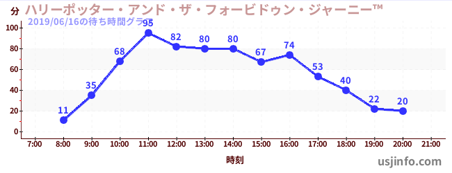 • ハリーポッター・アンド・ザ・フォービドゥン・ジャーニー™$B$N(B2019年06月16日の待ち時間