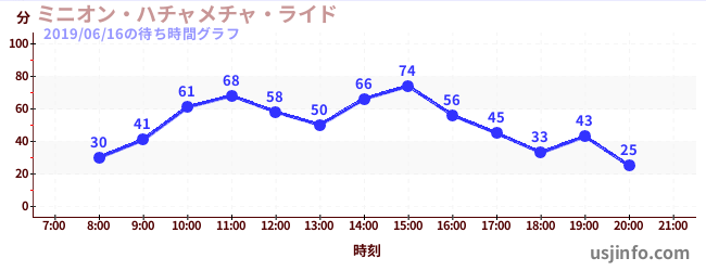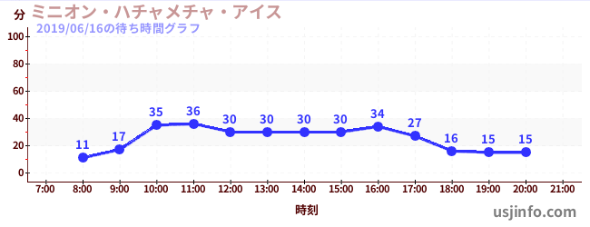 • ミニオン・ハチャメチャ・ライド$B$N(B2019年06月16日の待ち時間