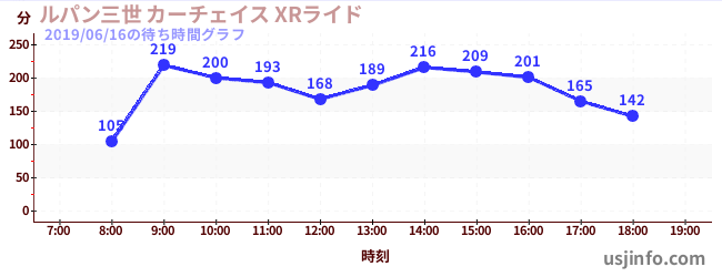 • ルパン三世 カーチェイス XRライド$B$N(B2019年06月16日の待ち時間