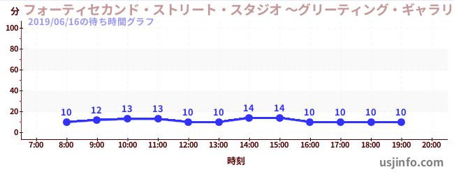 • フォーティセカンド・ストリート・スタジオ ~グリーティング・ギャラリー~ ミニオン$B$N(B2019年06月16日の待ち時間