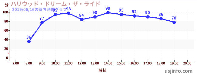 • ハリウッド・ドリーム・ザ・ライド$B$N(B2019年06月16日の待ち時間