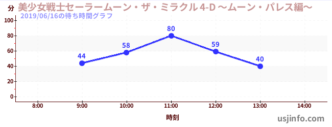 • 美少女戦士セーラームーン・ザ・ミラクル 4-D ~ムーン・パレス編~$B$N(B2019年06月16日の待ち時間