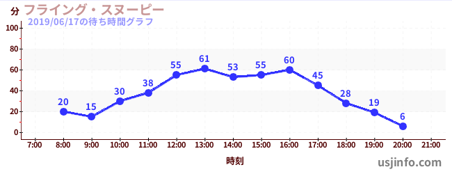 • フライング・スヌーピー$B$N(B2019年06月17日の待ち時間