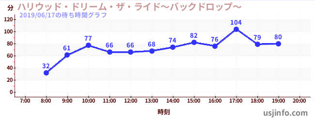 • ハリウッド・ドリーム・ザ・ライド〜バックドロップ〜$B$N(B2019年06月17日の待ち時間