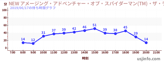 • NEW アメージング・アドベンチャー・オブ・スパイダーマン(TM)・ザ・ライド 4K3D$B$N(B2019年06月17日の待ち時間