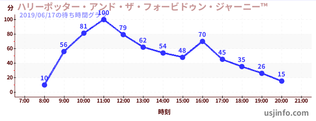 • ハリーポッター・アンド・ザ・フォービドゥン・ジャーニー™$B$N(B2019年06月17日の待ち時間