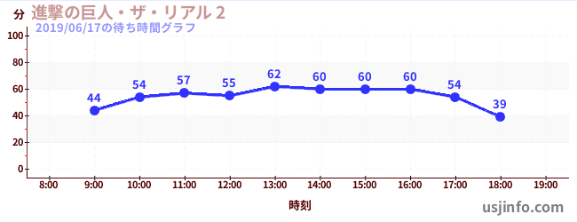 • 進撃の巨人・ザ・リアル 2$B$N(B2019年06月17日の待ち時間