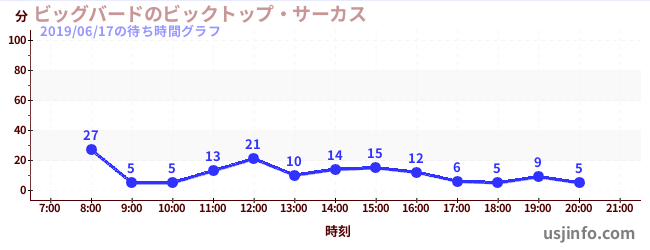 • ビッグバードのビックトップ・サーカス$B$N(B2019年06月17日の待ち時間