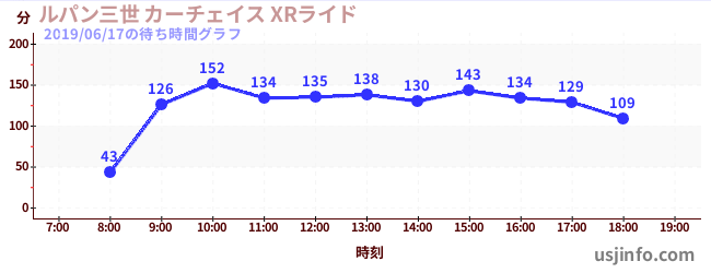 • ルパン三世 カーチェイス XRライド$B$N(B2019年06月17日の待ち時間