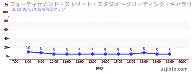 • フォーティセカンド・ストリート・スタジオ ~グリーティング・ギャラリー~ ミニオン$B$N(B2019年06月17日の待ち時間