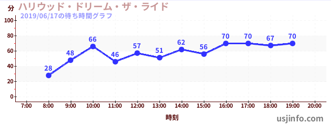 • ハリウッド・ドリーム・ザ・ライド$B$N(B2019年06月17日の待ち時間