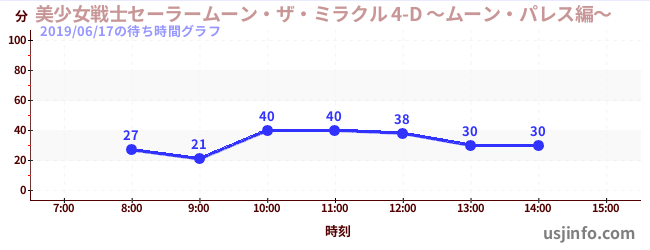 • 美少女戦士セーラームーン・ザ・ミラクル 4-D ~ムーン・パレス編~$B$N(B2019年06月17日の待ち時間