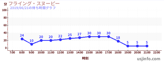 • フライング・スヌーピー$B$N(B2019年06月21日の待ち時間