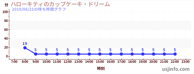 • ハローキティのカップケーキ・ドリーム$B$N(B2019年06月21日の待ち時間