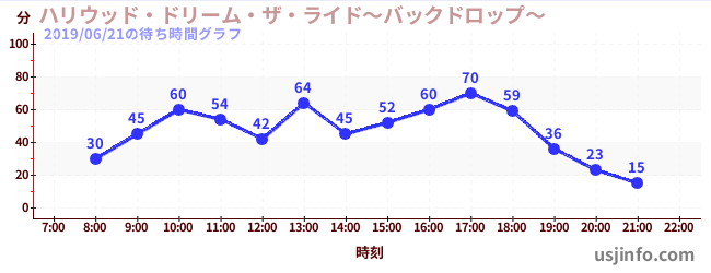 • ハリウッド・ドリーム・ザ・ライド〜バックドロップ〜$B$N(B2019年06月21日の待ち時間