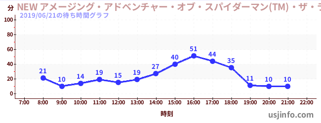 • NEW アメージング・アドベンチャー・オブ・スパイダーマン(TM)・ザ・ライド 4K3D$B$N(B2019年06月21日の待ち時間