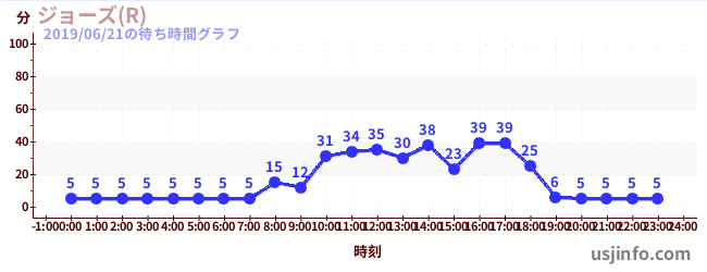 • ジョーズ(R)$B$N(B2019年06月21日の待ち時間