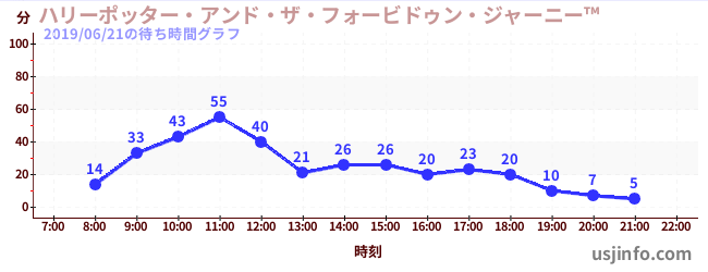 • ハリーポッター・アンド・ザ・フォービドゥン・ジャーニー™$B$N(B2019年06月21日の待ち時間