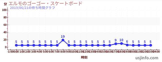 • エルモのゴーゴー・スケートボード$B$N(B2019年06月21日の待ち時間