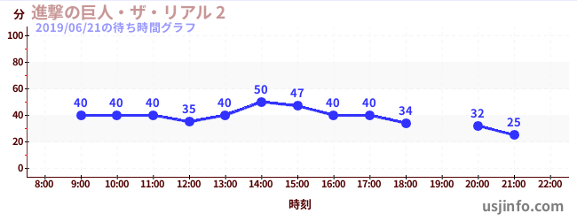 • 進撃の巨人・ザ・リアル 2$B$N(B2019年06月21日の待ち時間