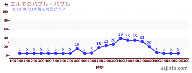 • エルモのバブル・バブル$B$N(B2019年06月21日の待ち時間