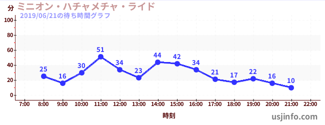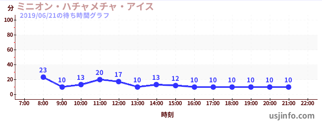 • ミニオン・ハチャメチャ・ライド$B$N(B2019年06月21日の待ち時間
