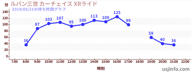 • ルパン三世 カーチェイス XRライド$B$N(B2019年06月21日の待ち時間