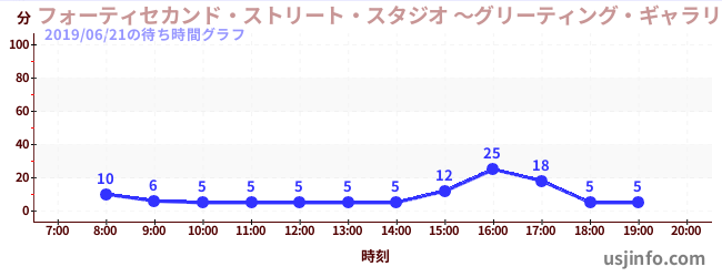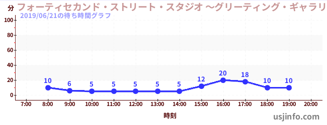 • フォーティセカンド・ストリート・スタジオ ~グリーティング・ギャラリー~ ミニオン$B$N(B2019年06月21日の待ち時間