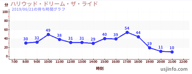 • ハリウッド・ドリーム・ザ・ライド$B$N(B2019年06月21日の待ち時間