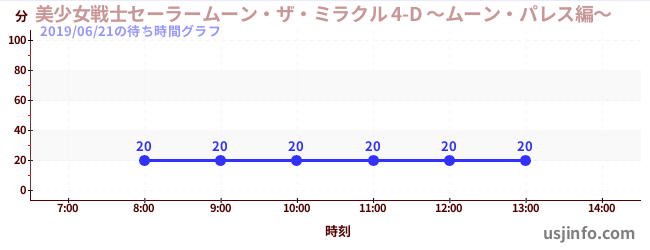 • 美少女戦士セーラームーン・ザ・ミラクル 4-D ~ムーン・パレス編~$B$N(B2019年06月21日の待ち時間