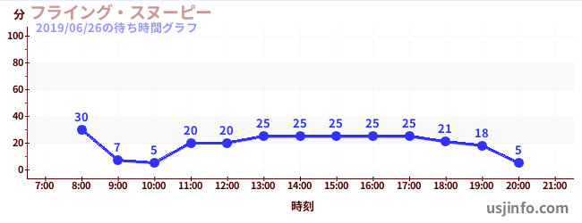 • フライング・スヌーピー$B$N(B2019年06月26日の待ち時間