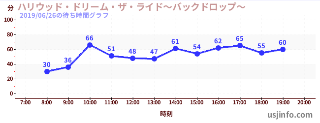 • ハリウッド・ドリーム・ザ・ライド〜バックドロップ〜$B$N(B2019年06月26日の待ち時間