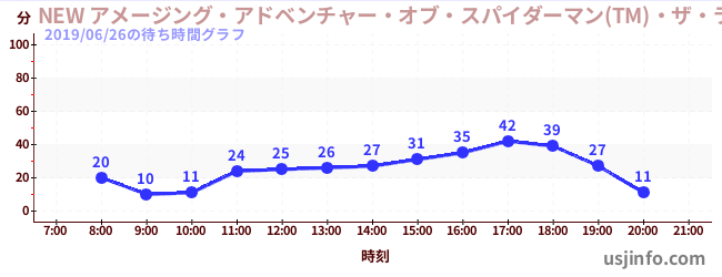 • NEW アメージング・アドベンチャー・オブ・スパイダーマン(TM)・ザ・ライド 4K3D$B$N(B2019年06月26日の待ち時間