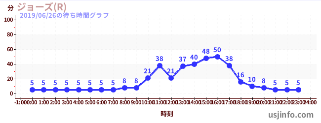 • ジョーズ(R)$B$N(B2019年06月26日の待ち時間