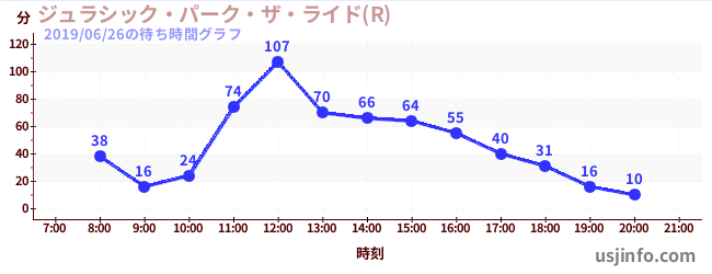 • ジュラシック・パーク・ザ・ライド(R)$B$N(B2019年06月26日の待ち時間