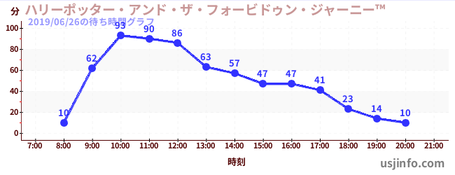 • ハリーポッター・アンド・ザ・フォービドゥン・ジャーニー™$B$N(B2019年06月26日の待ち時間