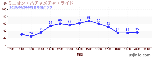 • ミニオン・ハチャメチャ・ライド$B$N(B2019年06月26日の待ち時間