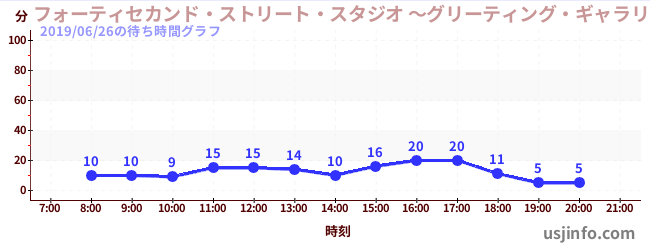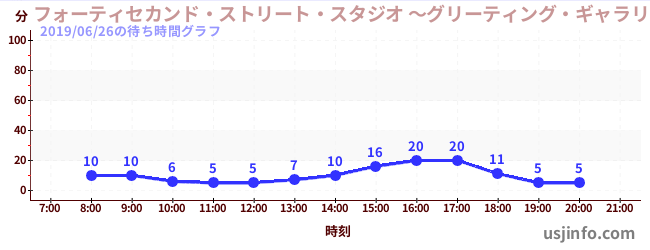 • フォーティセカンド・ストリート・スタジオ ~グリーティング・ギャラリー~ ミニオン$B$N(B2019年06月26日の待ち時間