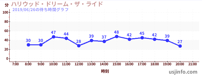 • ハリウッド・ドリーム・ザ・ライド$B$N(B2019年06月26日の待ち時間