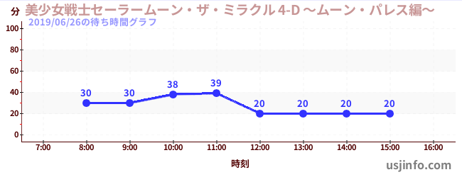 • 美少女戦士セーラームーン・ザ・ミラクル 4-D ~ムーン・パレス編~$B$N(B2019年06月26日の待ち時間