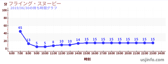 • フライング・スヌーピー$B$N(B2019年06月30日の待ち時間