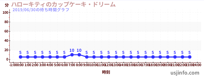 • ハローキティのカップケーキ・ドリーム$B$N(B2019年06月30日の待ち時間