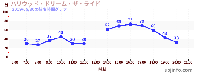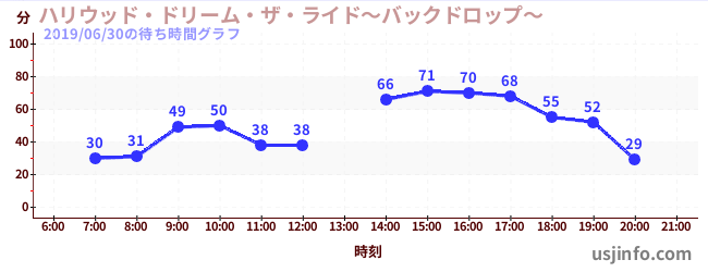 • ハリウッド・ドリーム・ザ・ライド〜バックドロップ〜$B$N(B2019年06月30日の待ち時間