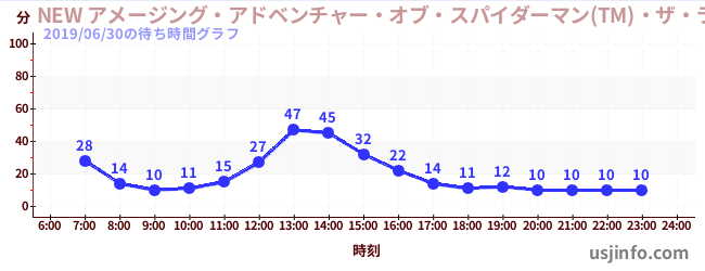 • NEW アメージング・アドベンチャー・オブ・スパイダーマン(TM)・ザ・ライド 4K3D$B$N(B2019年06月30日の待ち時間