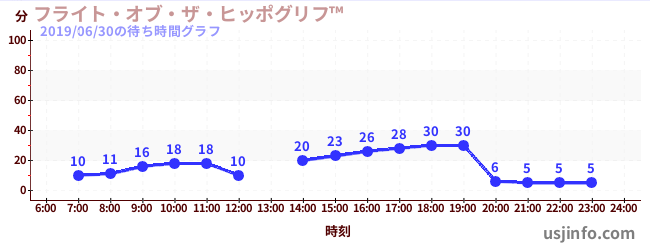 • フライト・オブ・ザ・ヒッポグリフ™$B$N(B2019年06月30日の待ち時間