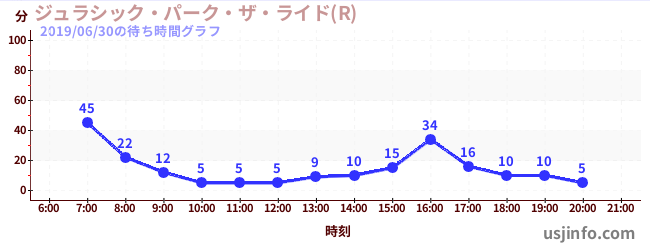 • ジュラシック・パーク・ザ・ライド(R)$B$N(B2019年06月30日の待ち時間