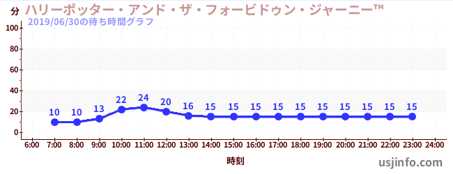 • ハリーポッター・アンド・ザ・フォービドゥン・ジャーニー™$B$N(B2019年06月30日の待ち時間